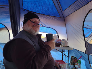We're living in a 12 person tent, us and four cats! The cats have adapted beautifully. So far they haven't shredded our temporary home to bits!